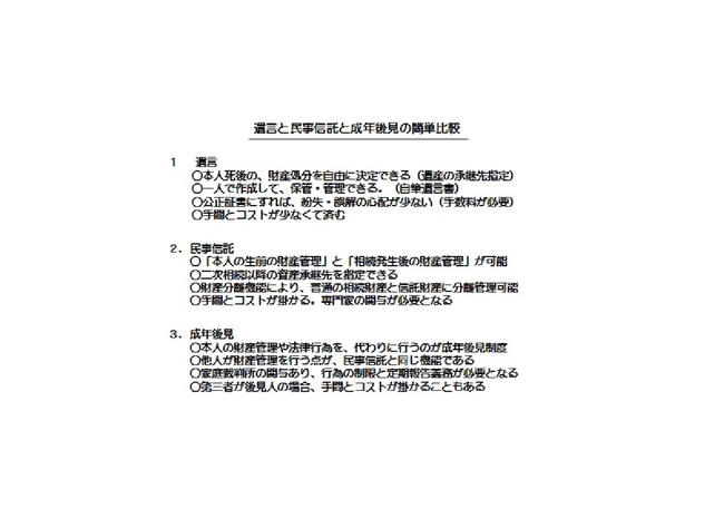 そこで、安心して老後・死後を迎えるための方法をいくつか列記して比較します。